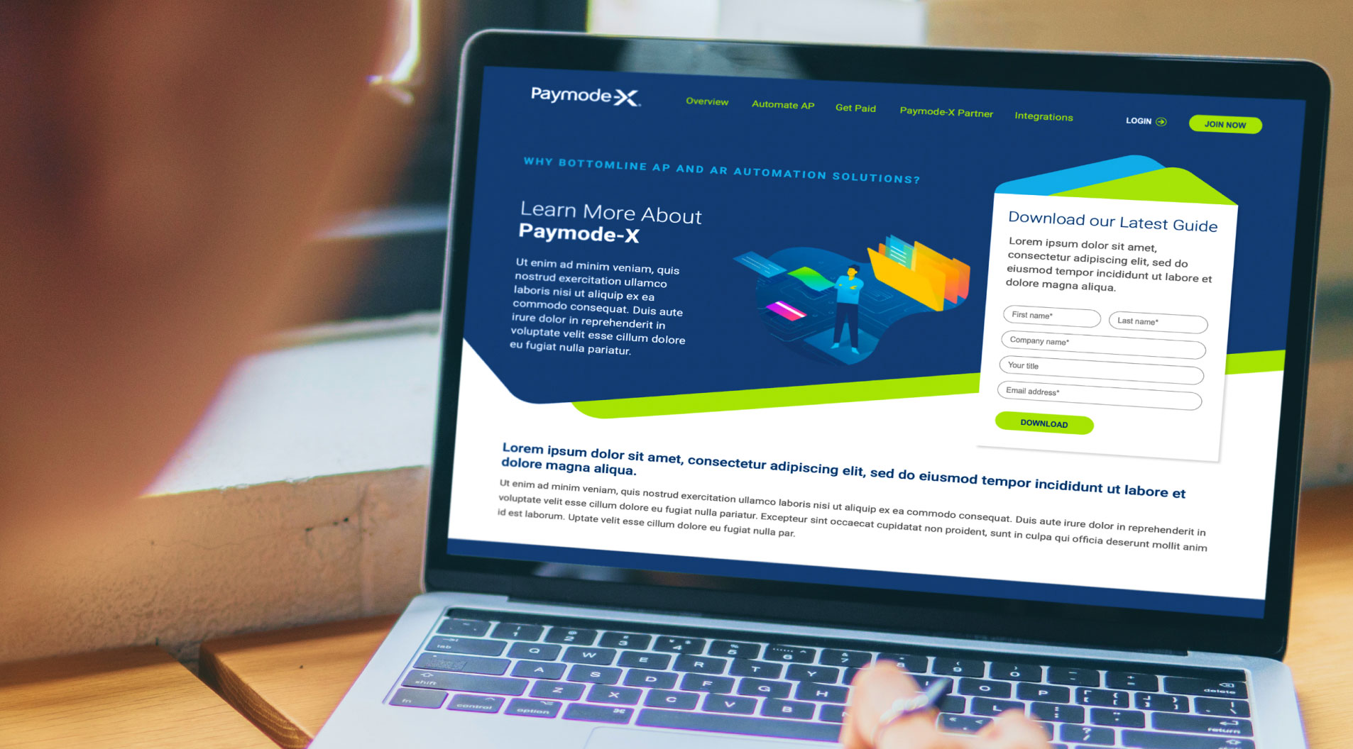 During an exploratory meeting, The Simon Group learned that Bottomline had a marketing automation platform that could be better utilized. Tapping into the platform’s modular capabilities, we developed a flexible landing page template that their internal team could quickly and easily populate with each client’s information and deploy with a simple “Save As.”