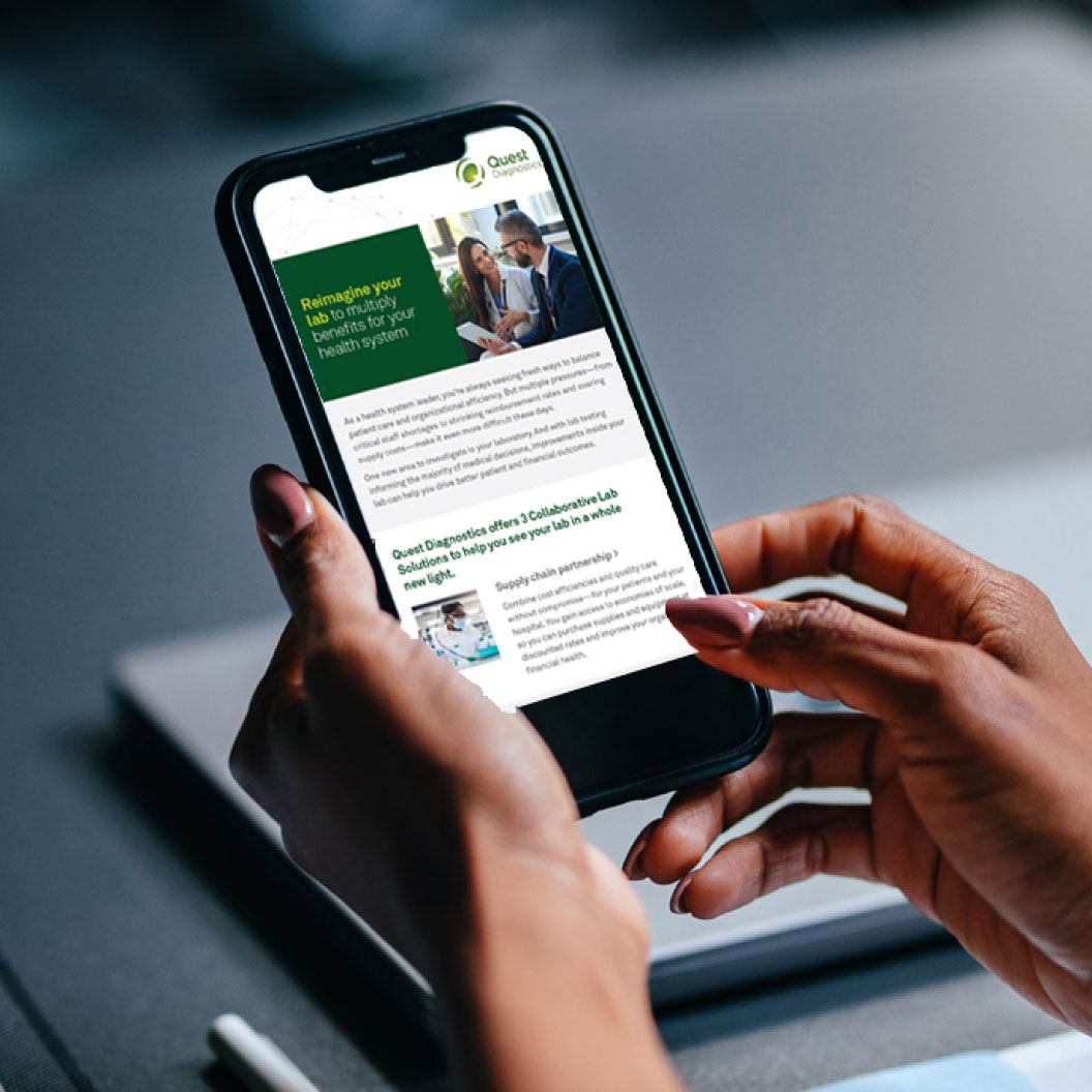 Quest Diagnostics® sought to expand its role as a lab partner to support its health system and hospital customers who had faced unprecedented challenges. From staffing shortages to declining reimbursement rates and escalating supply costs, these customers had grappled with continuous hurdles since the COVID-19 crisis.