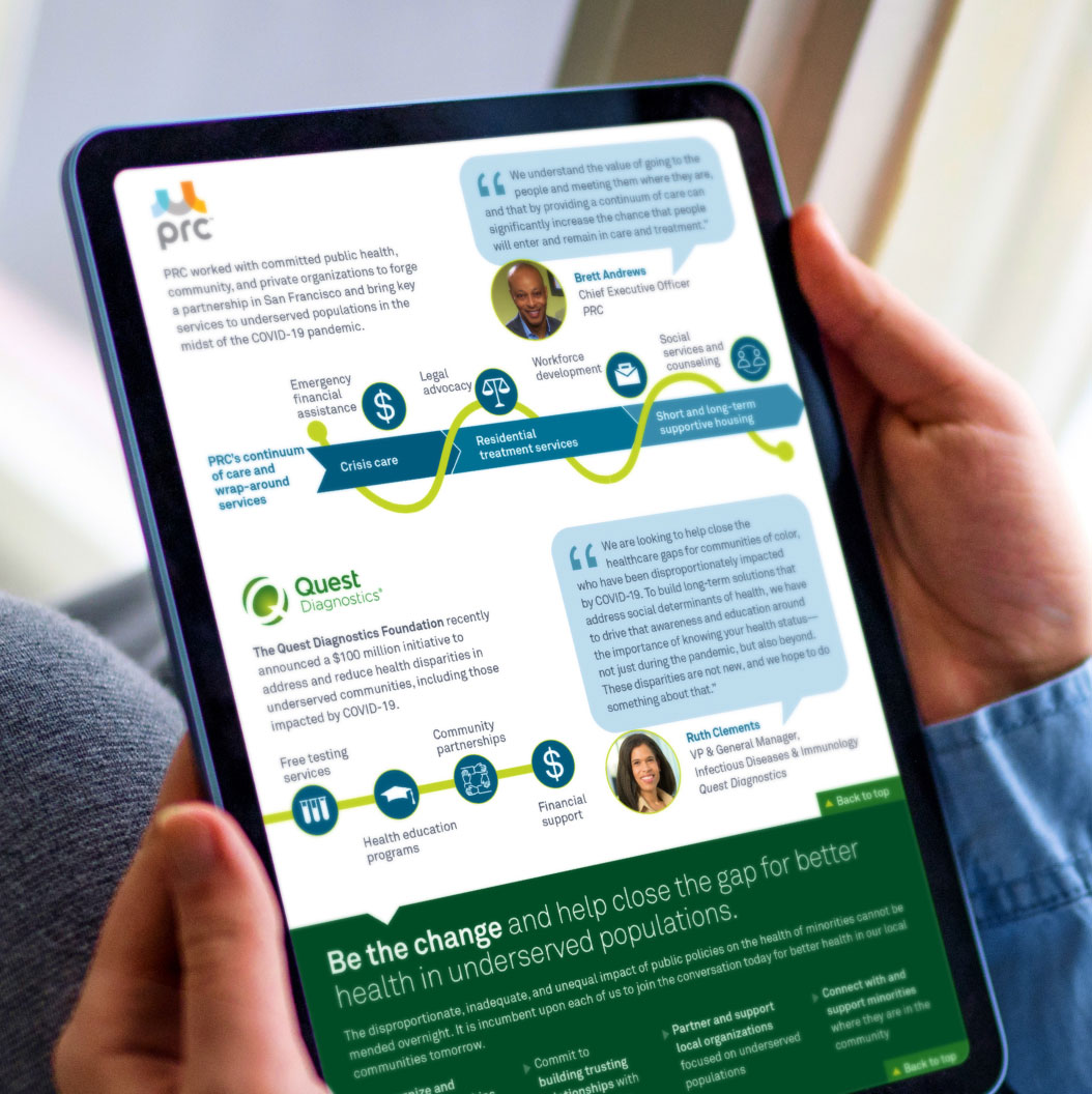These “hidden pandemics” were especially prevalent in vulnerable and underserved populations, and Quest Diagnostics® recognized the urgent need to take immediate action to uncover the major drivers of the inequitable impact of COVID-19.