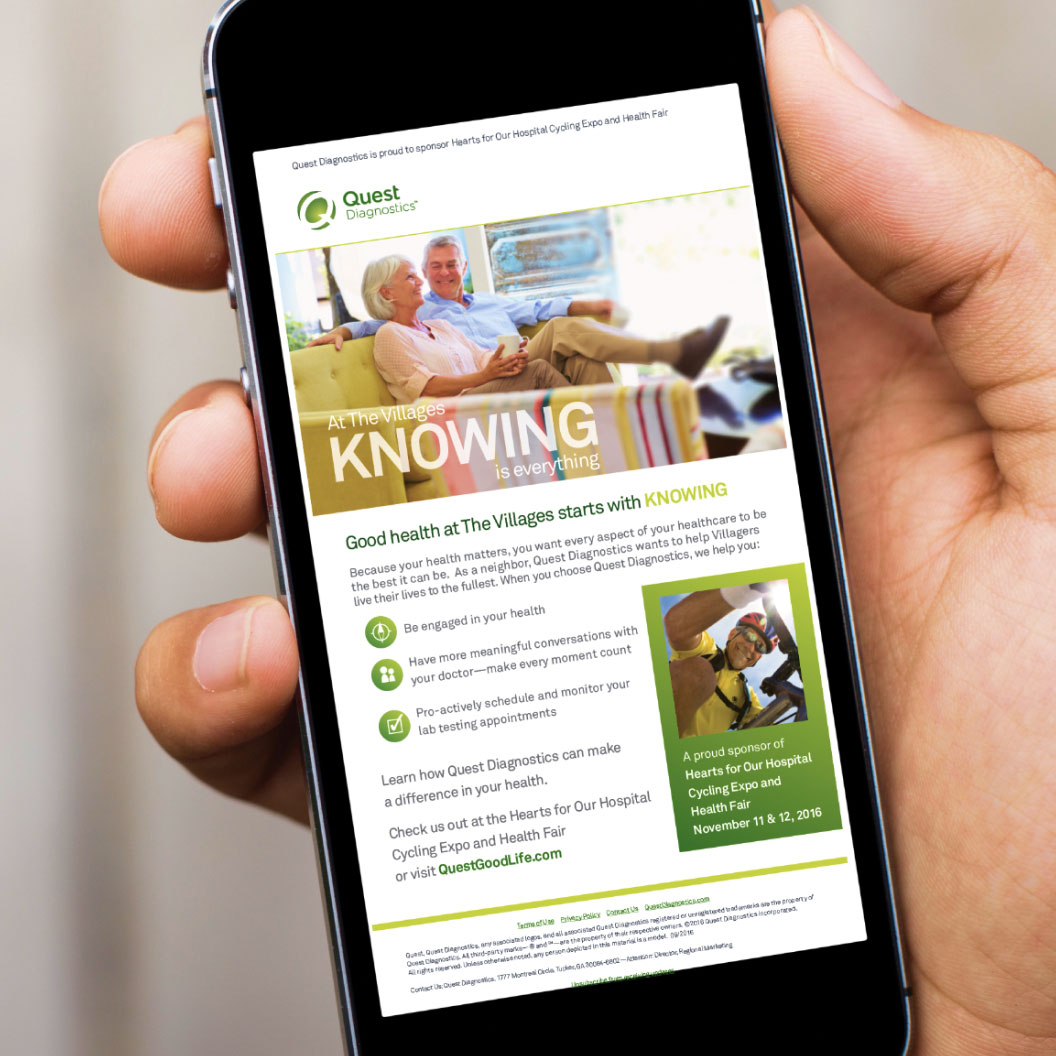 Quest successfully positioned itself as the lab of choice at The Villages and the campaign became a model for improving testing volumes at other 55+ communities around the country.